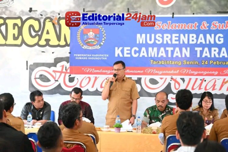 HUMBAHAS – Editorial24jam.com|| Bupati Humbang Hasundutan Dr. Oloan Paniaran Nababan SH., MH yang diwakili Asisten Perekonomian dan Pembangunan Martogi Purba mengikuti Musrenbang Kecamatan Tarabintang Tahun 2025 bertempat di Aula Kantor Camat Tarabintang, Senin (24/2).